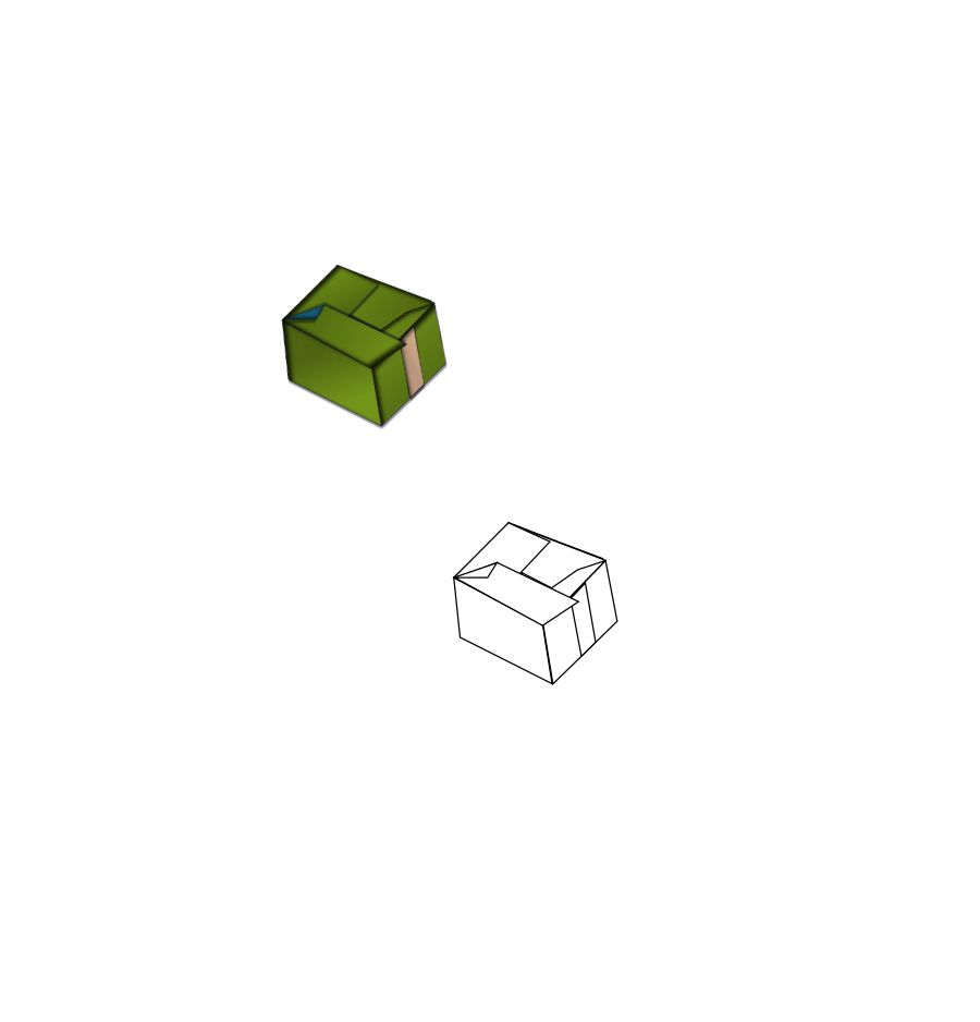 This features a green box and a white box placed on a flat surface. The green box is positioned slightly to the left of the center, while the white box is located towards the right side of the scene. Both boxes are sitting in an open area with no other objects or distractions visible in the background. This simple image showcases two different colored boxes placed next to each other on a plain surface.