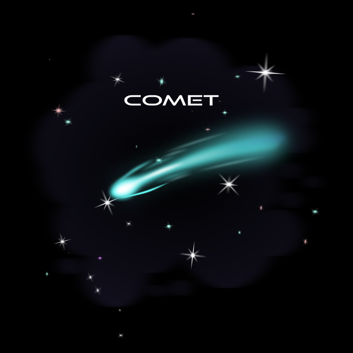 This features a blue comet in outer space, with the word "Comet" written above it. The comet is surrounded by numerous white stars, creating an impressive and captivating scene. The combination of the comet's vibrant color and the sparkling stars creates a sense of wonder and exploration, as if we are witnessing the cosmic journey of this celestial body.