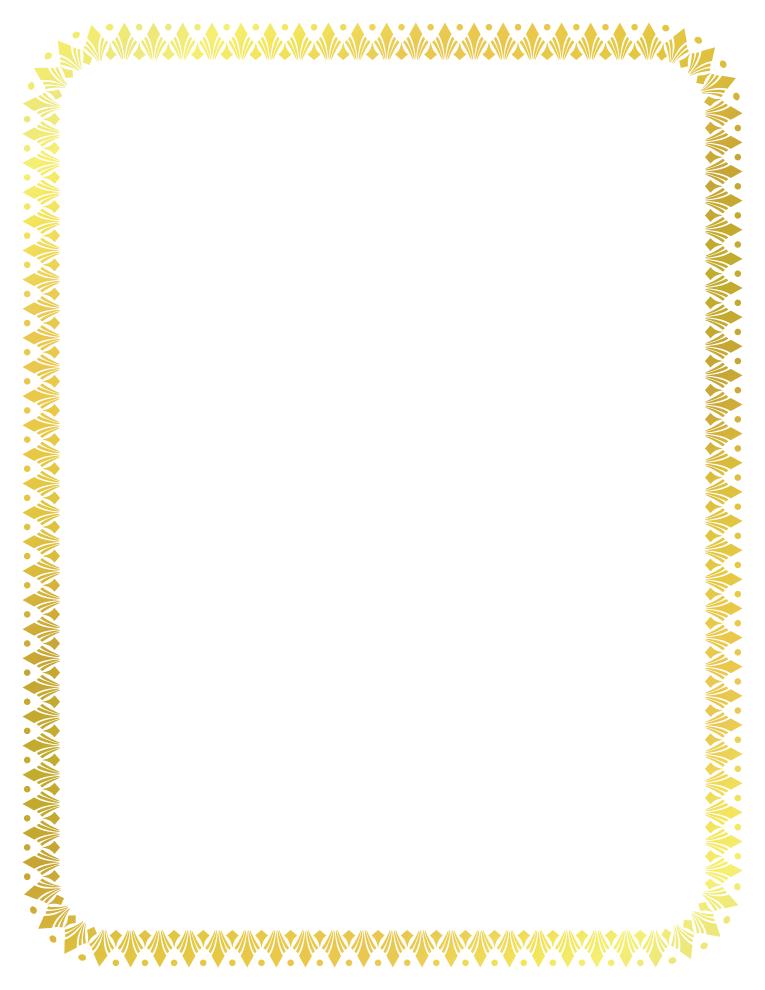This features a decorative frame with a gold gradient, designed to fit US letter (8.5x11in) paper. The frame is adorned with yellow shapes and patterns that create an elegant appearance. This design can be used for various purposes such as adding a touch of sophistication to documents or artwork, creating a visually appealing presentation, or even as a decorative element in the home or office.