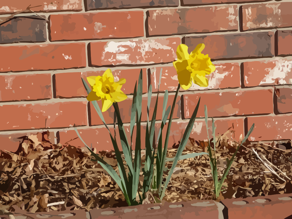 This is a completely free image Daffodils in a brick wall. that you can download, post, and use for any purpose.