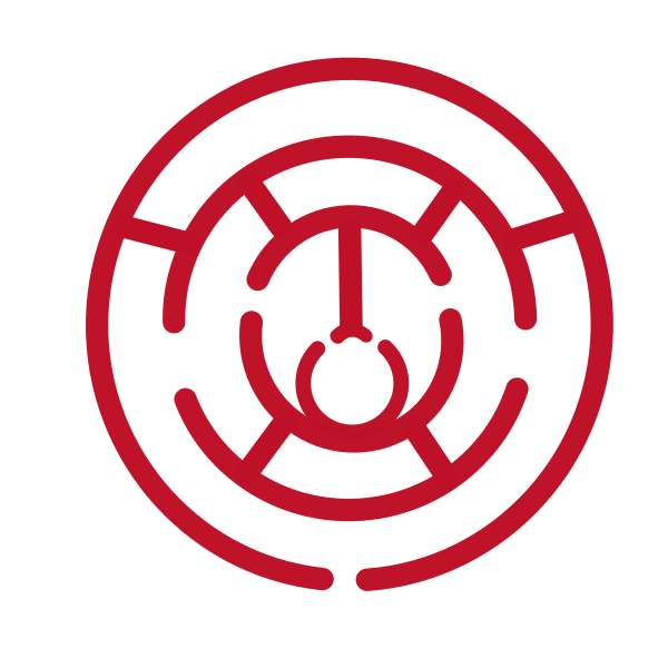 This features a red circle with an intricate design inside of it. This design resembles a maze or a puzzle, giving the impression that one might be lost in thought while trying to navigate through its pathways. The circle is filled with various shapes and lines, creating a visually engaging pattern. The overall appearance of the image suggests an artistic representation of a complex problem or challenge that requires careful examination and attention to detail.