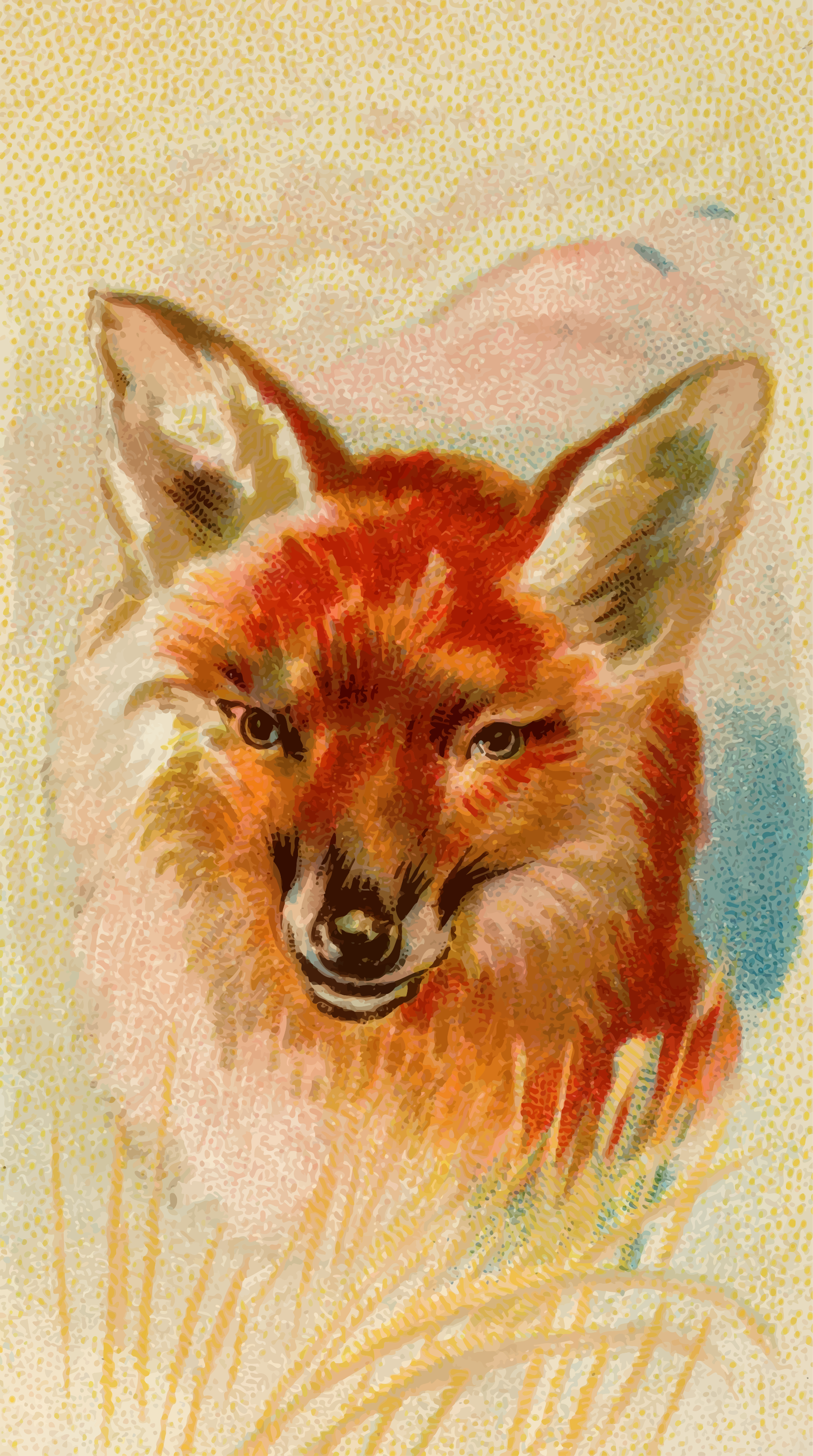 This features a red fox with its mouth open, standing in the grass. It appears to be looking directly at the viewer, capturing their attention. The fox's fur is depicted as orange and white, giving it an eye-catching appearance. The scene is set against a backdrop of a field, which provides a natural setting for the fox. Overall, this image showcases the beauty and charm of the red fox in its natural habitat.
