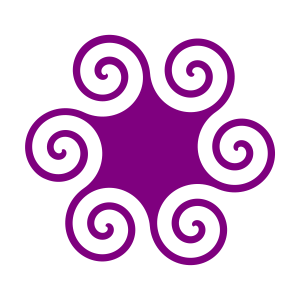 This features a purple spiral with six swirls, giving it an intricate and visually appealing appearance. In the center of the spiral, there is a star-like shape that adds to its unique design. The combination of the purple color and the swirling pattern creates a striking contrast against the white background, making this image stand out as a captivating piece of art or decoration.