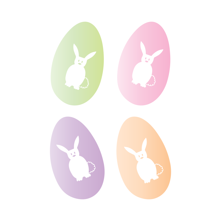 This features a set of four colorful eggs, each with a cute bunny rabbit design. These adorable little creatures are sitting on top of the eggs, making for an eye-catching and delightful scene. The eggs come in various colors, including pink, yellow, green, and purple, adding to their visual appeal. The combination of the cute bunnies and the vibrant egg colors creates a charming and playful atmosphere that is sure to bring joy to anyone who sees it.