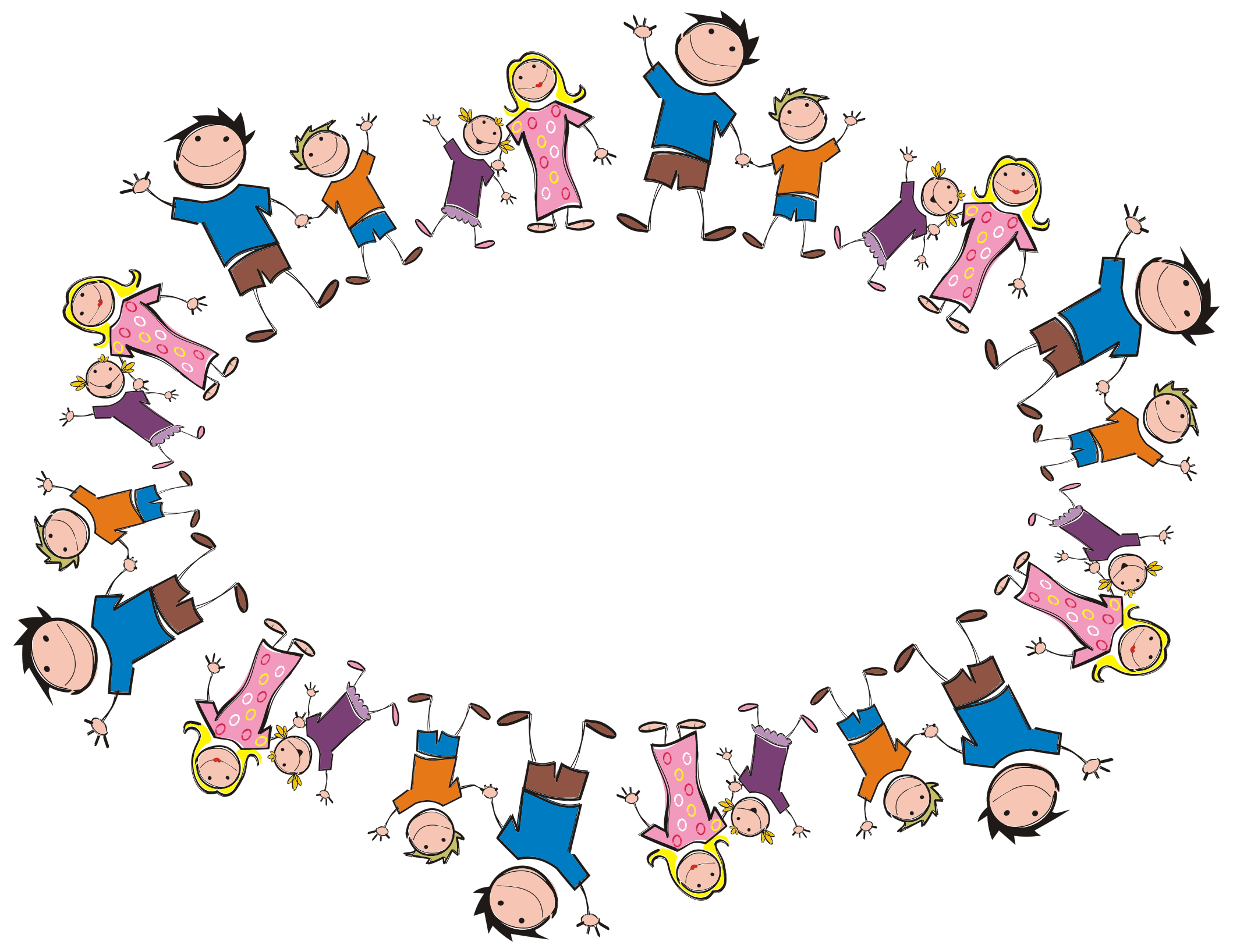 This features a large circle with several stick figures of children and adults arranged around it. There are at least nine people in the scene, including both children and adults. Some of them are standing while others are lying down or sitting on the ground. They appear to be enjoying their time together as they form a group within the circle. The arrangement of these figures creates an interesting visual effect that highlights the connection between family members.