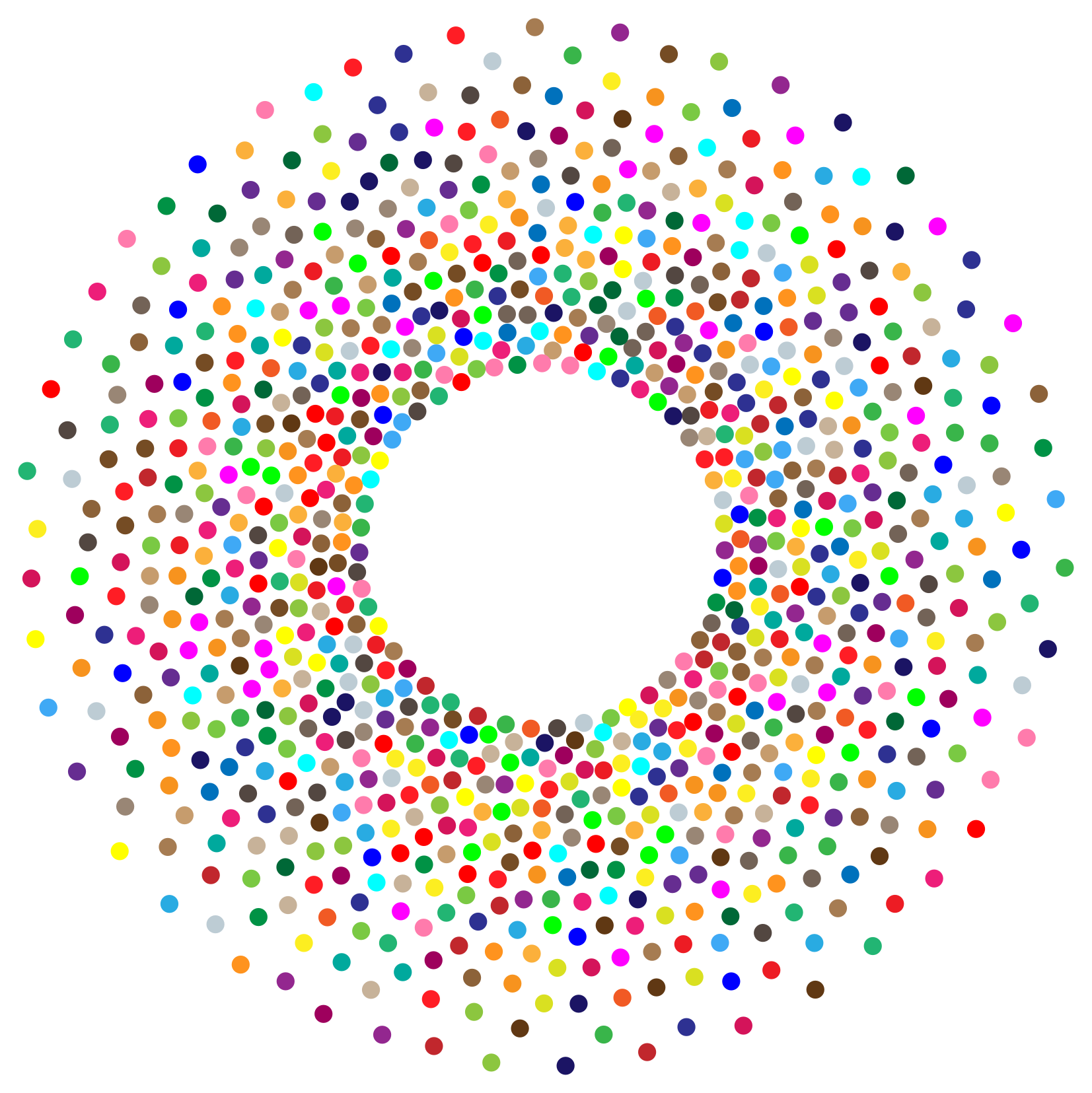 This features a large, colorful circle made up of many small dots. These dots are scattered all around the circle in various colors and sizes, creating an eye-catching pattern. The circle is divided into sections, with each section containing different colored dots that create a visually appealing design. The combination of these vibrant colors and intricate patterns make this image quite captivating and unique.