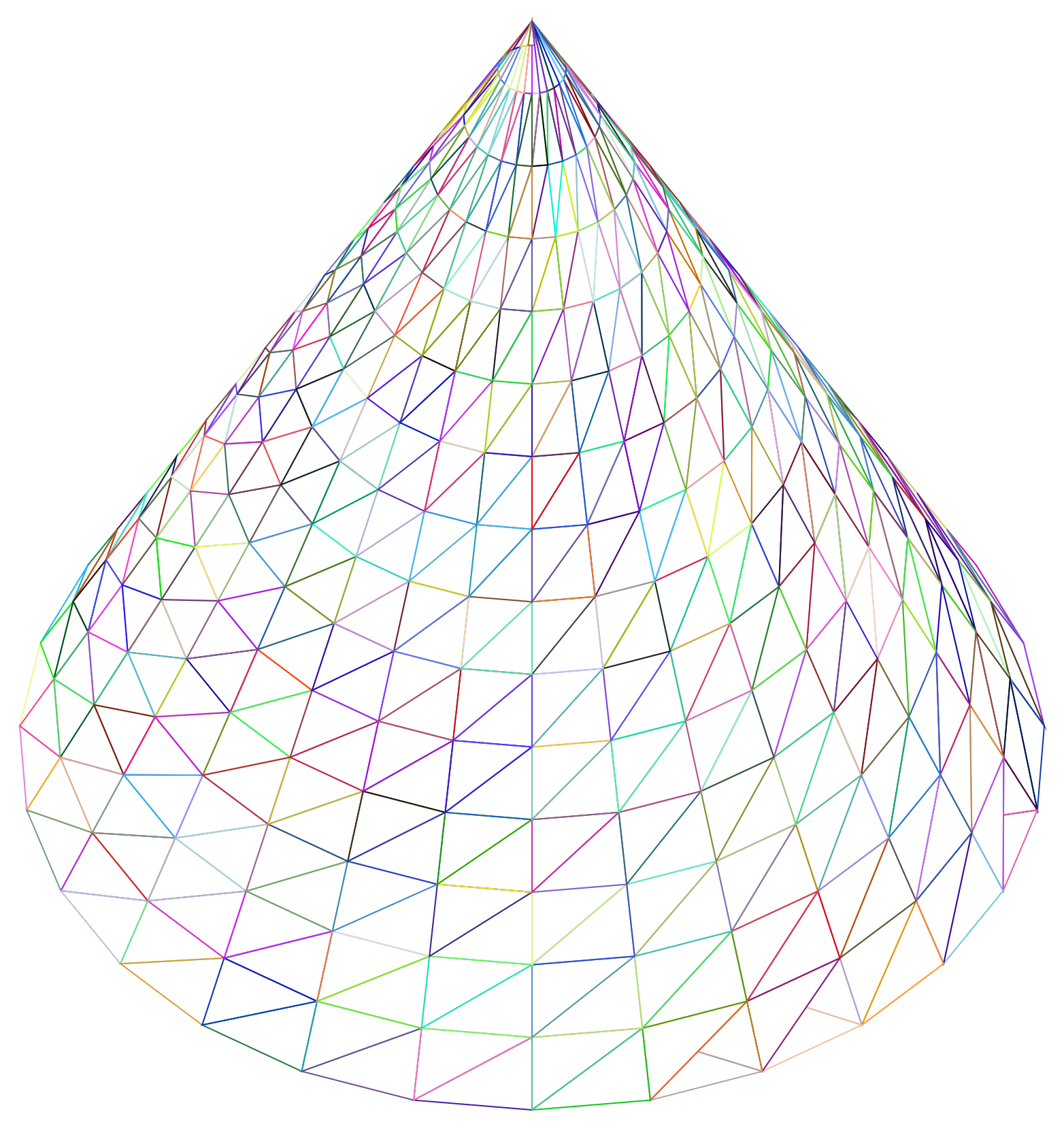 Tags: 3d, abstract, art, chromatic, colorful, cone, geometric, low poly, polygon, prismatic, rainbow, triangle, wireframe