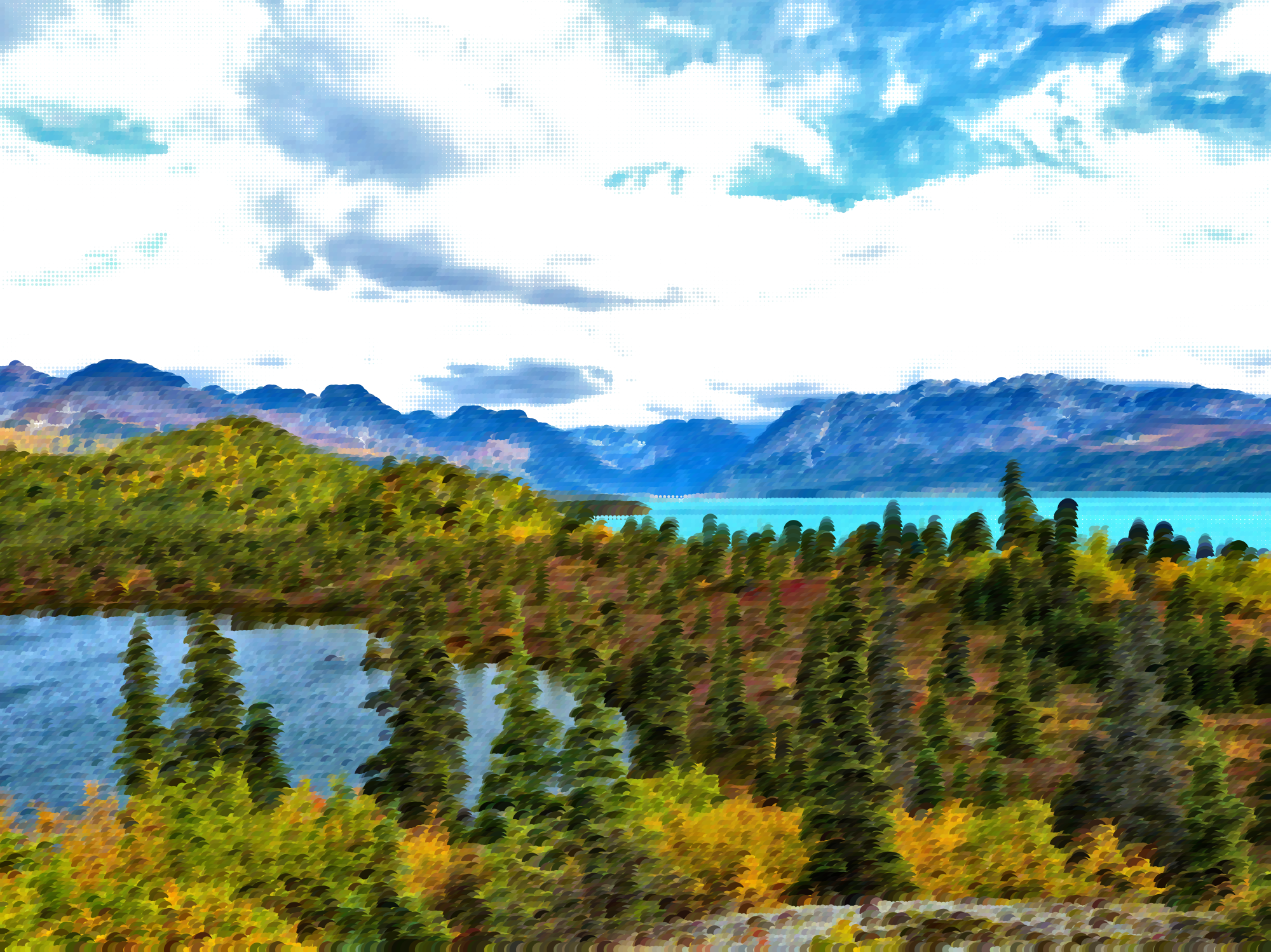 Tags: abstract, art, circle, dot, forest, geometric, lake, landscape, mosaic, mountain, nature, photograph, source pixabay, surreal, water, tree