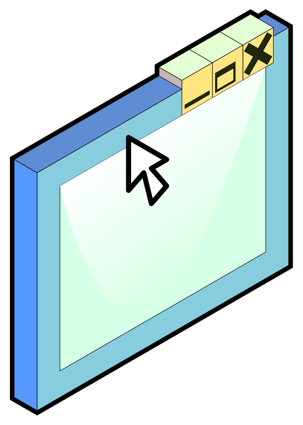 Tags: 3d, axonometric, dialog box, isometric, maximize, minimize, mouse, pointer, window