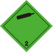 This features a green square with the number 2 written in black on it. This could be an official ADR pictogram, which is a symbol used to represent hazardous materials during transportation. The pictogram is designed to convey information about the potential dangers associated with specific substances and their handling procedures. It serves as a visual warning for those who handle or transport these materials, ensuring that they take necessary precautions to minimize risks and maintain safety standards.
