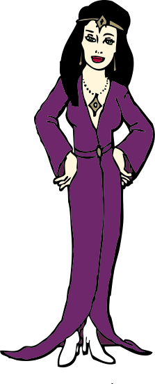 This features a woman dressed in a purple gown, standing with her hands on her hips. She appears to be wearing jewelry and has an air of confidence as she poses for the picture. The woman's outfit is reminiscent of a princess or a priestess, adding a sense of elegance and sophistication to the scene. The overall composition of the image creates a visually appealing and captivating portrait of this woman in her purple attire.