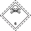This features a black and white skull and crossbones symbol, which is commonly associated with danger or hazard. This symbol is often used to indicate the presence of potentially harmful substances or materials. In this case, it appears that the skull and crossbones is being used as an emblem for a dangerous good, possibly related to transportation or shipping. The black and white color scheme adds a sense of formality and seriousness to the symbol, emphasizing its importance in conveying potential risks associated with the material it represents.