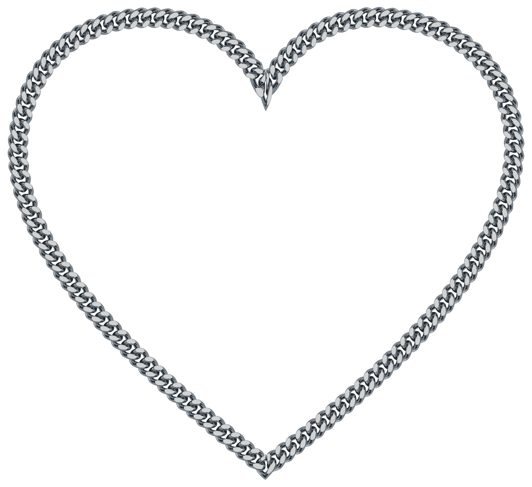 This features a heart-shaped design made of chain links. The heart is composed of multiple rows of interconnected chains, creating an intricate and visually appealing pattern. The chains are arranged in such a way that they form the shape of a heart, with the top part being slightly larger than the bottom part. This unique design gives the impression of a chain-linked heart, making it an interesting and creative piece of art or decoration.