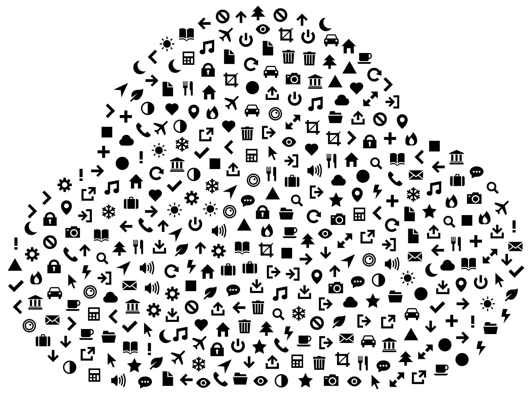 This features a large collection of various icons, including symbols and pictures. These icons are arranged in a circular pattern, creating an interesting visual effect. There is a wide variety of icons within the circle, ranging from simple shapes like circles and squares to more complex images such as people or animals. Some of these icons are placed closer together while others are spaced further apart, giving the impression of depth and dimension to the image. Overall, it's an intriguing composition that showcases a diverse range of symbols and pictures.