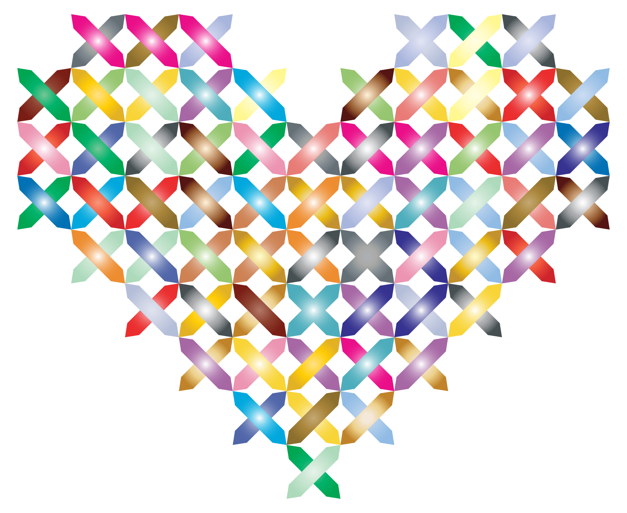 This features a heart-shaped design made up of various colored squares. These squares are arranged in such a way that they form the shape of a heart, with different colors creating a visually appealing pattern. The heart is composed of multiple smaller hearts, each one varying in size and color, which adds to its complexity and visual interest. This unique design can be used for various purposes, including decorative elements or as a creative art piece.