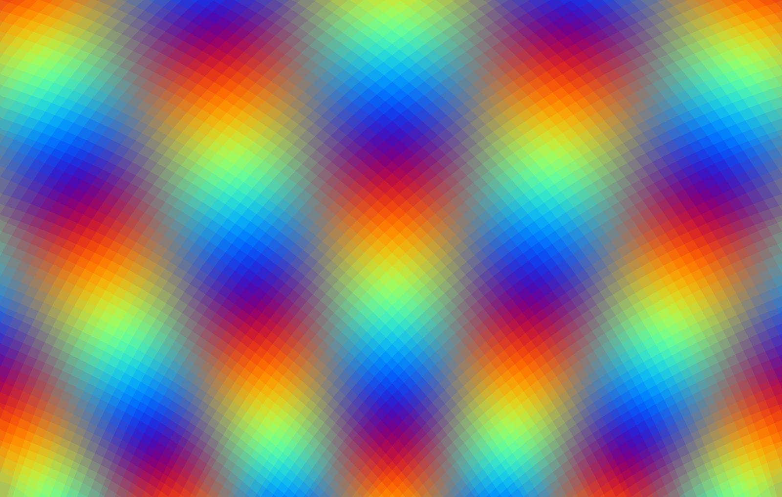 This features a vibrant and colorful pattern of blue, green, yellow, orange, and red colors. These colors are arranged in a checkered or diamond-like pattern that creates an eye-catching visual effect. The background is predominantly blue with the other colors interspersed throughout the scene. This unique design could be used for various purposes such as wallpaper, fabric patterns, or even as a decorative element in interior spaces.