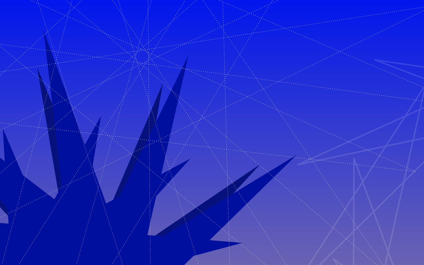 This features a blue sky with a large, dark blue structure in the foreground. This structure appears to be an artistic representation of a cactus or a similar plant-like shape. It is surrounded by numerous small dots that create a visually interesting pattern against the backdrop of the blue sky. The overall effect gives the impression of a futuristic landscape, with the large dark blue structure as its focal point.