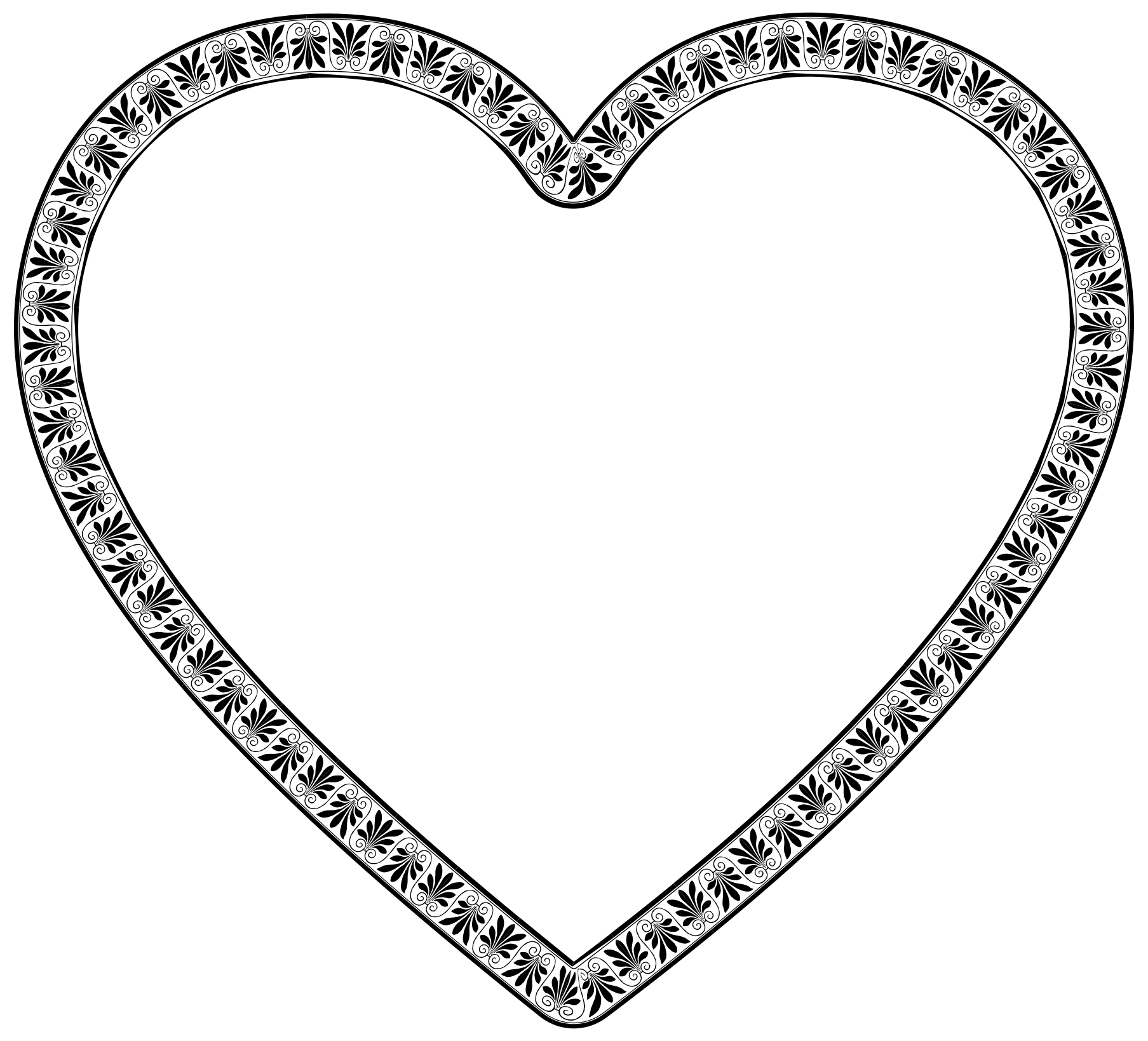 This features a heart-shaped design with an intricate pattern of leaves and flowers. The heart is made up of two halves, one on top of the other, creating a symmetrical appearance. The design appears to be black and white, giving it a classic and elegant look. This decorative flourish heart can be used for various purposes such as embellishing cards, gift wrapping or even as a wall hanging in a room. Its simple yet sophisticated design makes it versatile and suitable for different occasions.