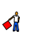 This features a cartoon man holding a red flag. He is wearing blue jeans and appears to be standing in front of a white background. The man's figure occupies most of the frame, with the red flag held prominently in his hand. This illustration could represent various themes or ideas related to patriotism, protest, or simply an artistic representation of a person holding a flag.