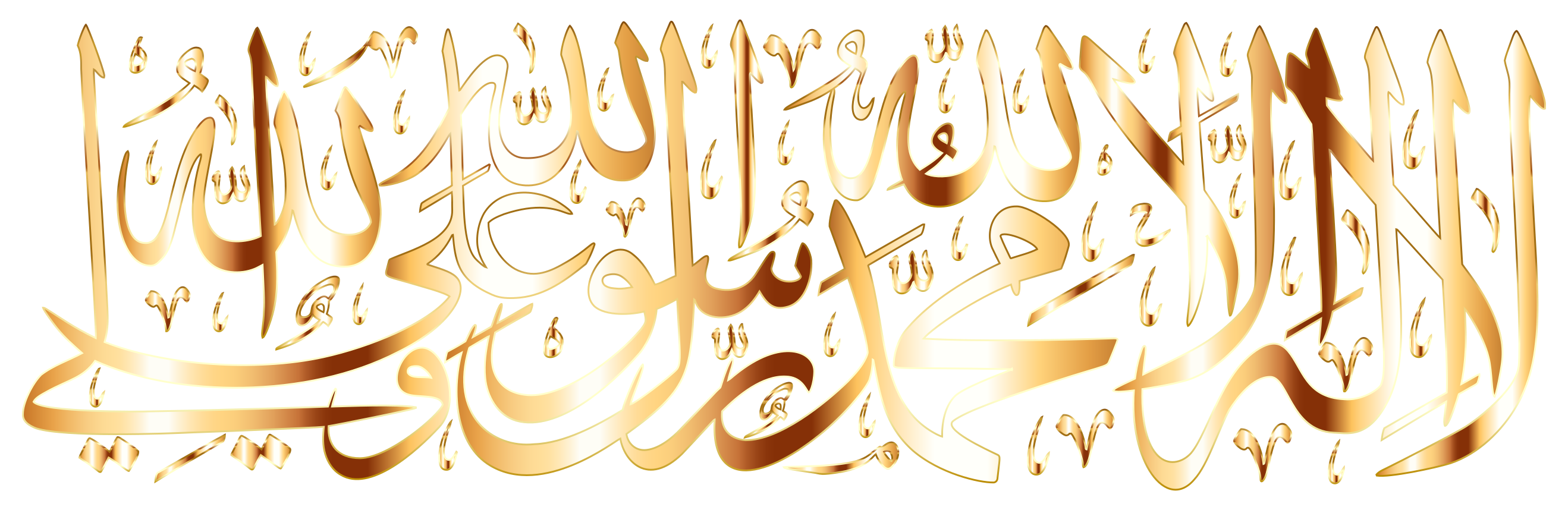 This features a beautifully written Arabic script, which is displayed in various oriental styles. The text appears to be written in gold and is arranged in an intricate pattern. This artistic display of writing showcases the elegance and beauty of the Arabic language. The script is spread across the entirety of the image, covering a large portion of the frame.