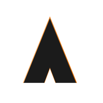 This features a black and white triangle with an orange outline. This unique design element is reminiscent of the shape of an arrow, but it has been altered to create a distinctive visual effect. The triangle's shape is filled with black, while the orange outline adds contrast and interest to the overall composition. The combination of these two colors creates a striking and memorable image that stands out against its background.