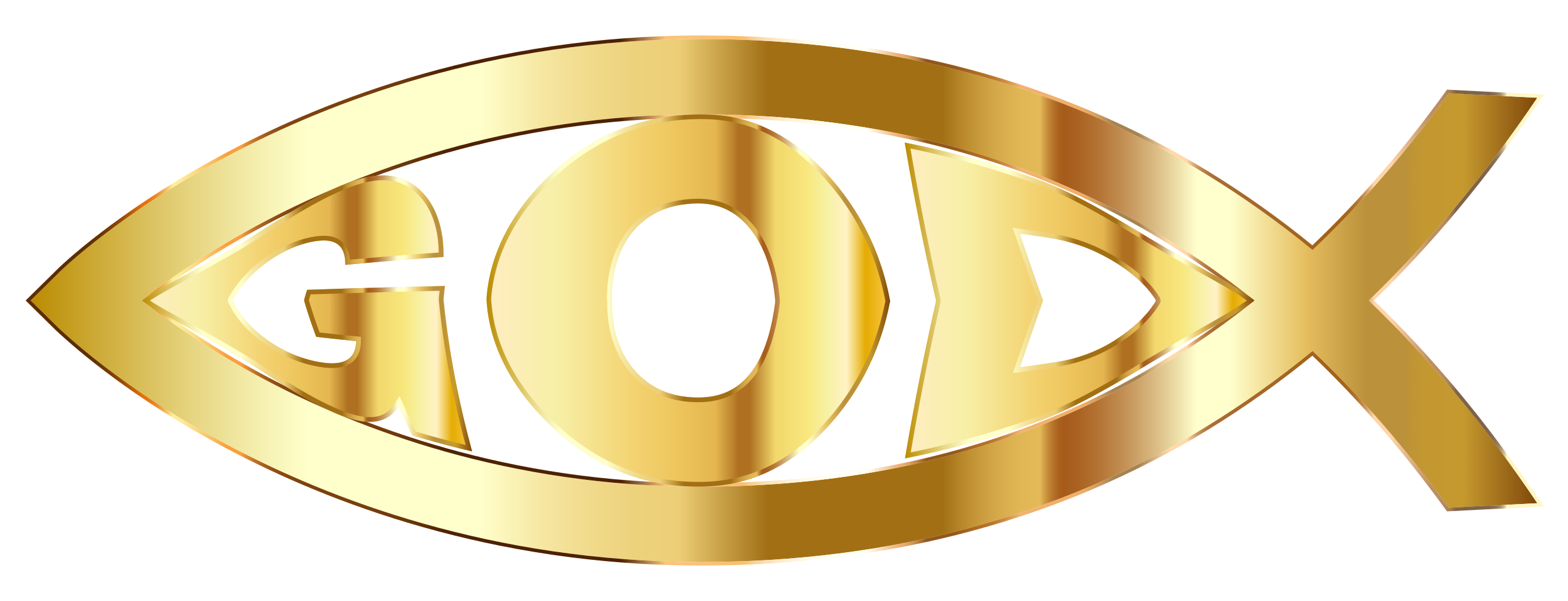 This features a gold and white sign with the word "God" written in large letters. The sign is adorned with a fish symbol, which is often associated with Christianity. The combination of the fish symbol and the word "God" suggests that this could be an advertisement or promotional material for a religious organization or event. The gold color of the sign adds to its visual appeal and makes it stand out against any background.