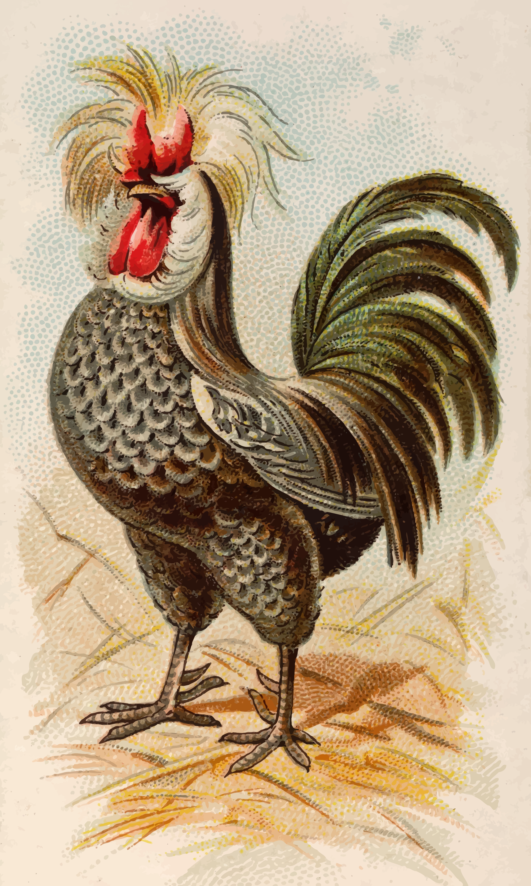 This is a completely free image Rooster with long tail feathers. that you can download, post, and use for any purpose.