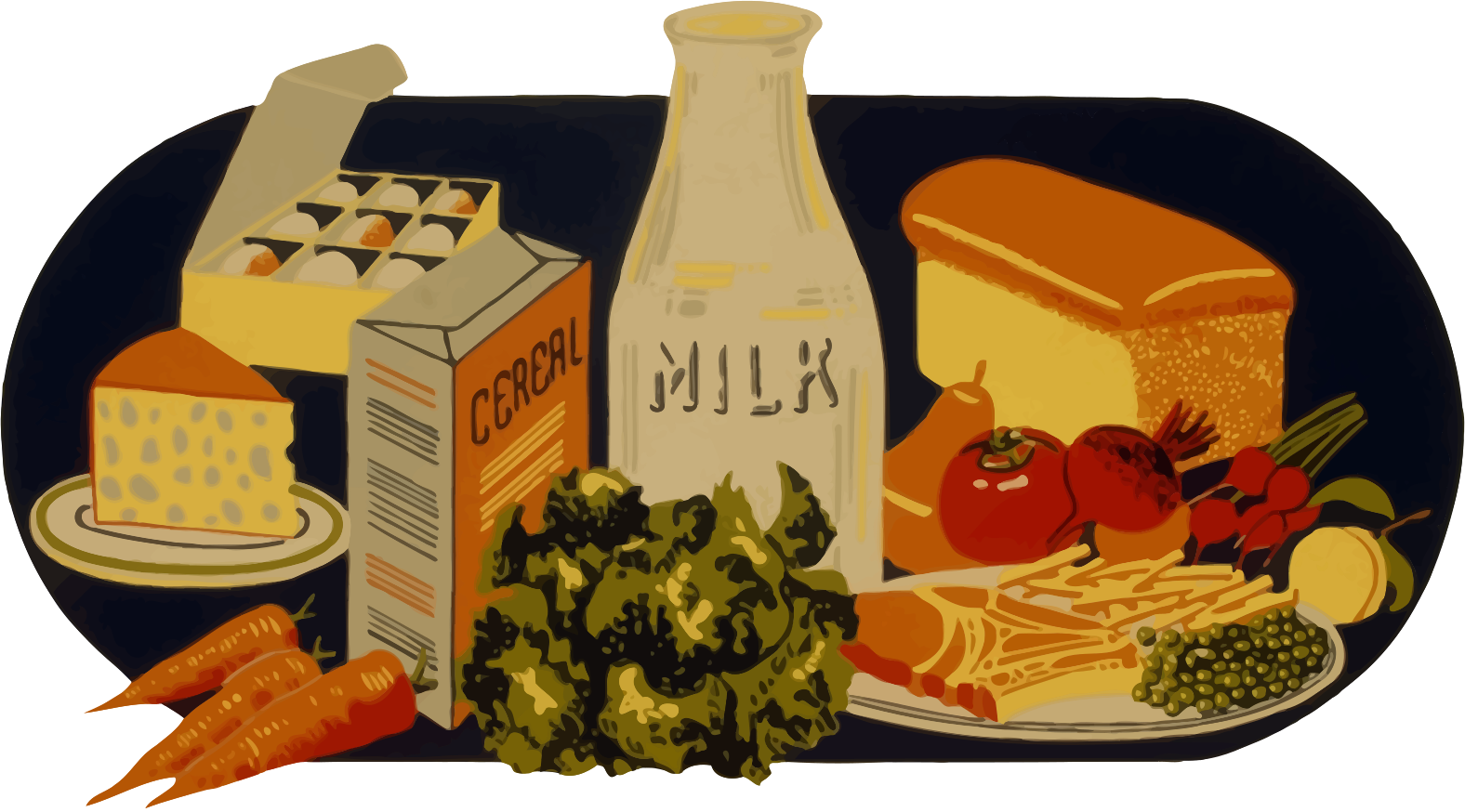 Tags: food, bread, milk, cereal, carrot, broccoli, tomato