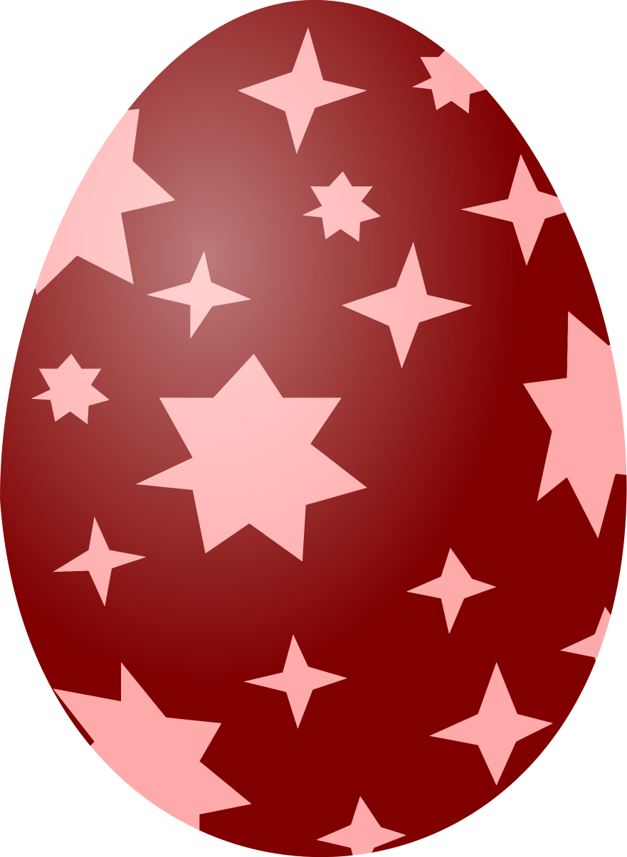 This features a close-up of a red egg with white stars on it. The egg is decorated with numerous small, round star shapes that are scattered all over its surface. These stars create an interesting and visually appealing pattern on the egg's surface. The combination of the red color and the white stars gives the egg a unique and eye-catching appearance.