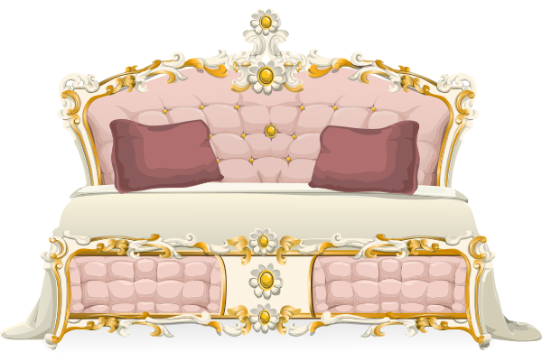 This is a completely free image A fancy bed with a gold frame and two pillows that you can download, post, and use for any purpose.