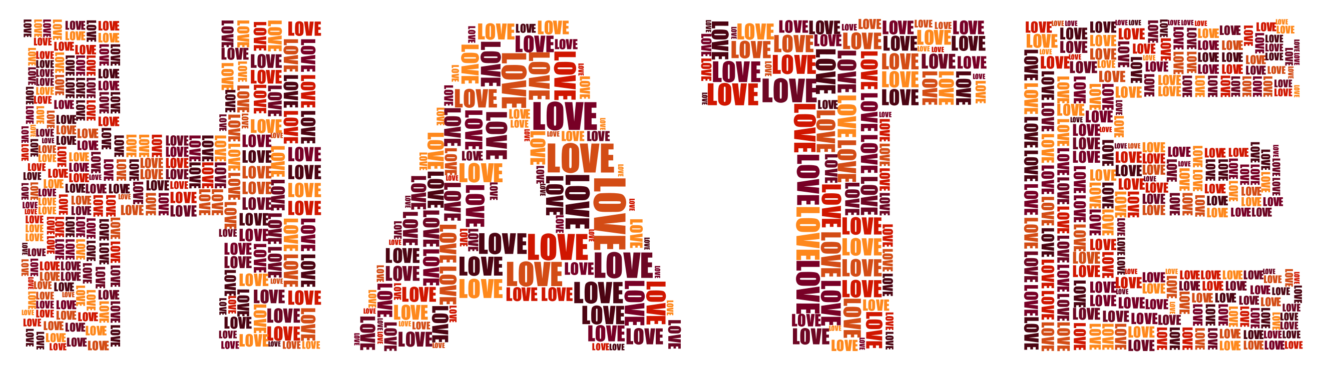 This features a large, red word "Hate" made up of many smaller words. These words are arranged in various orientations and sizes to create the word "Hate." The individual letters that make up the word are scattered across the entirety of the image, creating a visually striking composition. This artistic arrangement of letters gives the impression of a powerful message against hate or discrimination.