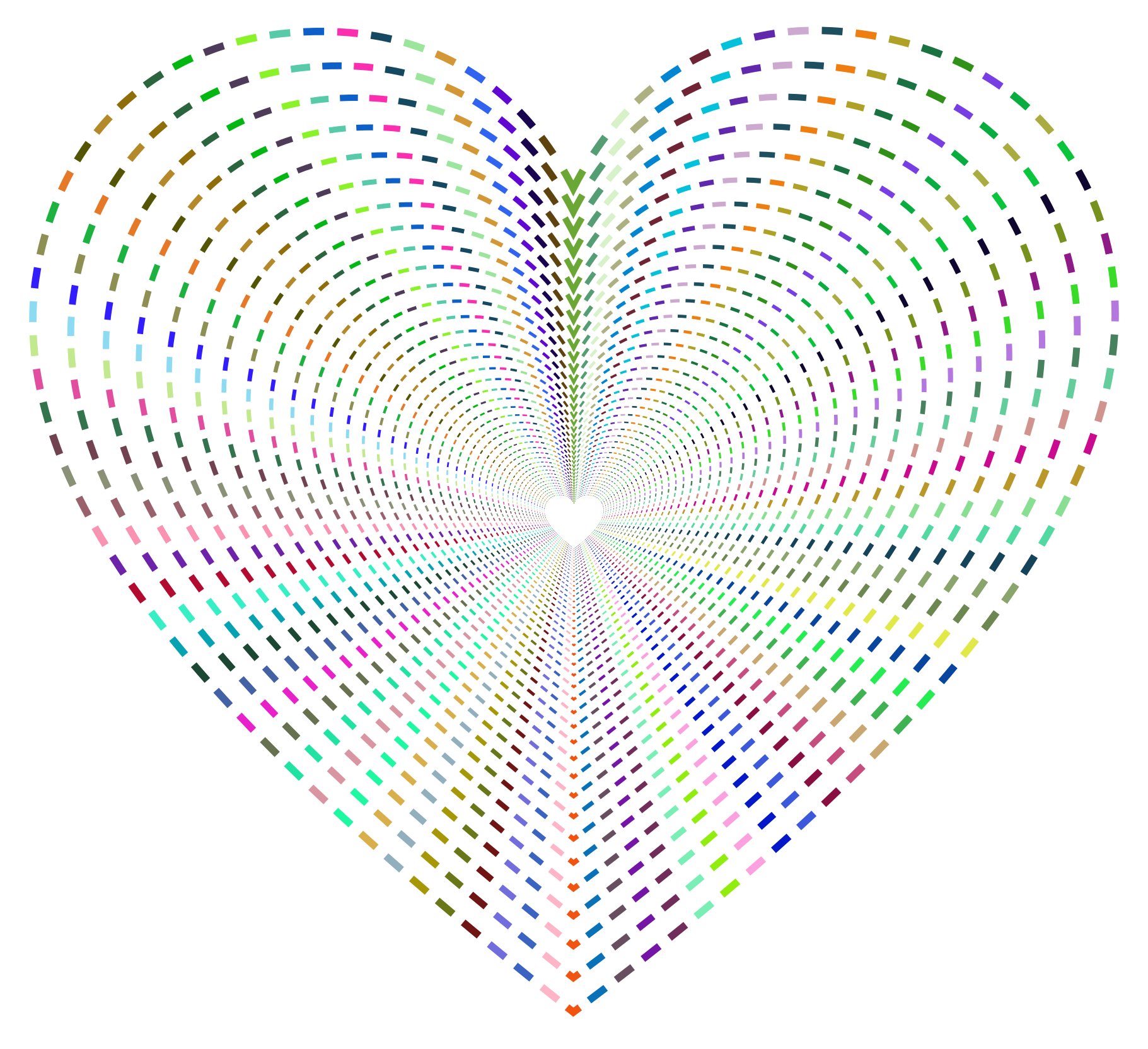 This features a large, colorful heart made up of many smaller hearts. These smaller hearts are arranged in a circular pattern, creating an intricate and visually appealing design. The hearts come in various colors, including red, green, blue, yellow, orange, pink, purple, and white. The combination of these different colors creates a vibrant and lively atmosphere that is both eye-catching and inviting. This heart design could be used for decorative purposes or as a unique art piece to brighten up any space.