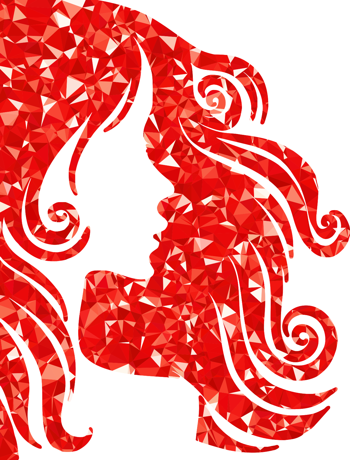 Tags: abstract, art, beauty, fashion, female, gemstone, geometric, girl, hair, human, low poly, person, polygon, profile, ruby, woman, design, red, swirl