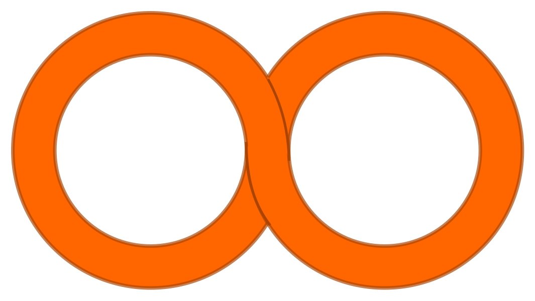 This features two orange circles with a white background, resembling the number eight. These circles are placed next to each other, creating an illusion of a figure eight shape. The circles have a slightly overlapping appearance, giving them a more dynamic and visually interesting look. This design could be used for various purposes such as decoration or symbolism in different contexts.