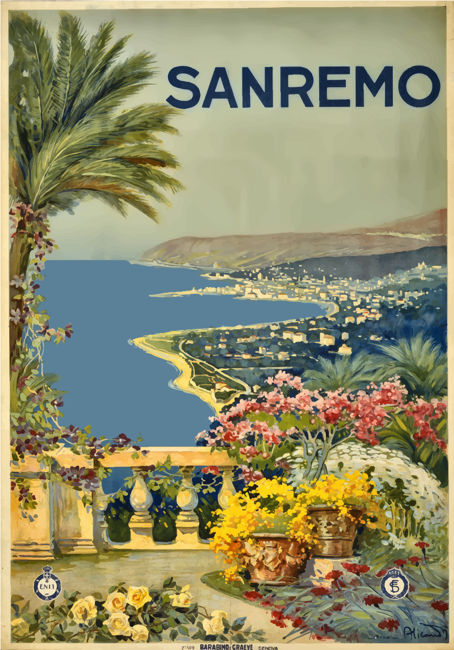 This is a completely free image Sanremo Italy Vintage Travel Poster that you can download, post, and use for any purpose.