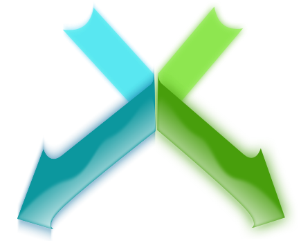 This features a green and blue colored X shape, which is the main focus of the picture. This unique design element is displayed prominently in the foreground, with its vibrant colors making it stand out against the background. The combination of these two distinctive colors creates an eye-catching visual effect that draws attention to the X shape.
