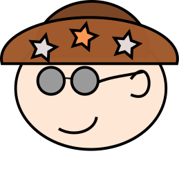 This features a cartoon character with glasses and a brown hat. The character is wearing a brown hat that has stars on it, giving the impression of a wizard or magical figure. The hat appears to be a part of a costume, adding an element of fun and whimsy to the scene. The character's facial expression suggests a sense of happiness or contentment, as if they are enjoying themselves in their imaginative world.