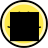 This features a round yellow shape with a black square in the center. This unique design creates an interesting contrast between the bright yellow and dark black colors. The circle itself is quite large, occupying most of the frame, while the black square takes up a significant portion of the central area within the circle. Overall, this image presents a visually striking combination of colors that draws attention to the unique design.