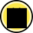 This features a yellow circle with a black square placed over it. The circle is outlined in black, giving the appearance of a border around the yellow area. The black square takes up most of the space within the circle, leaving little to no white or light-colored areas visible. This design creates an interesting contrast between the bright yellow and dark black colors, making the image visually striking.