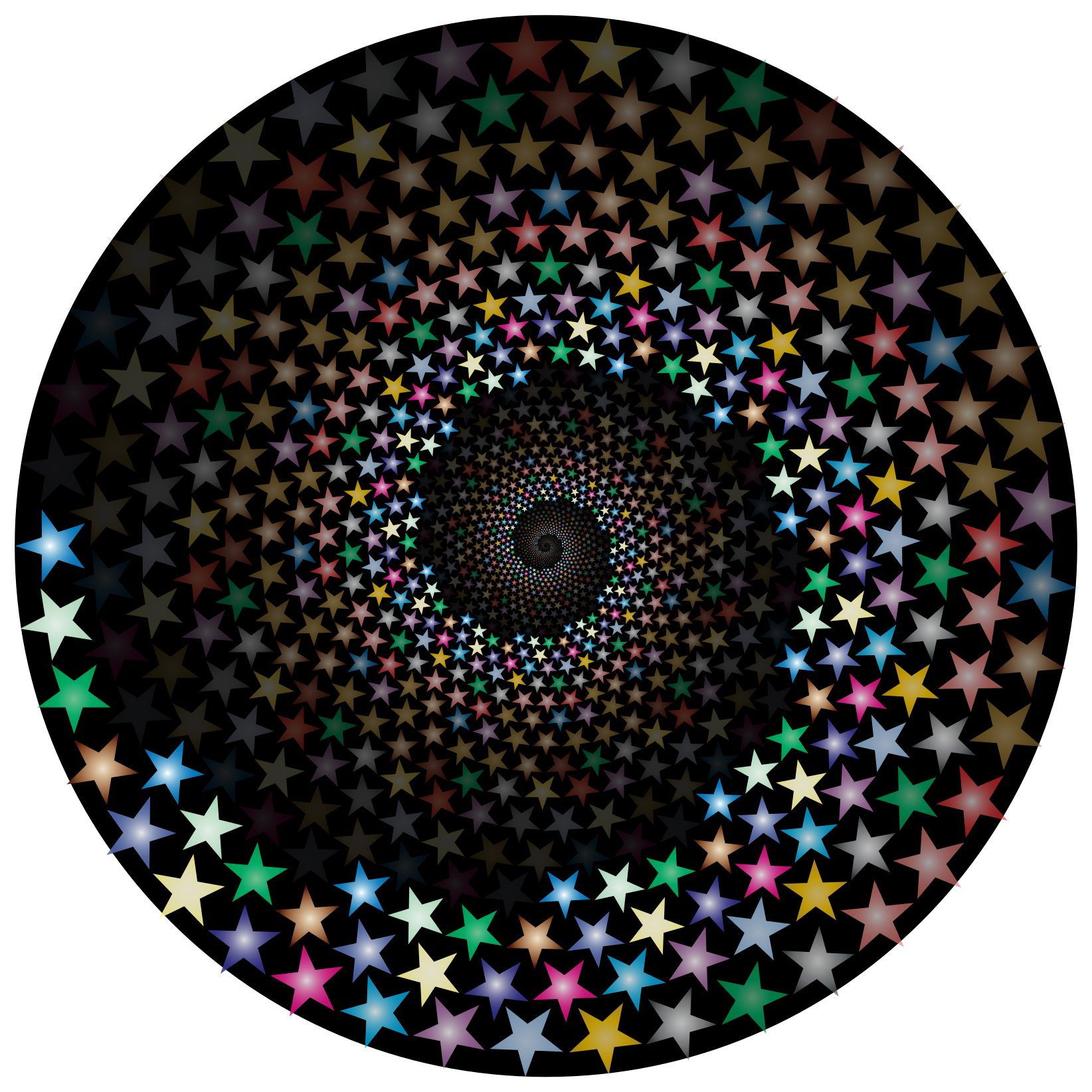 This features a large, colorful circle with a swirling pattern of stars. The stars are arranged in various shapes and sizes, creating an intricate and visually appealing design. The circle is filled with these stars, making it the central focus of the image. The combination of colors and patterns creates a vibrant and dynamic atmosphere that draws attention to the circular shape.