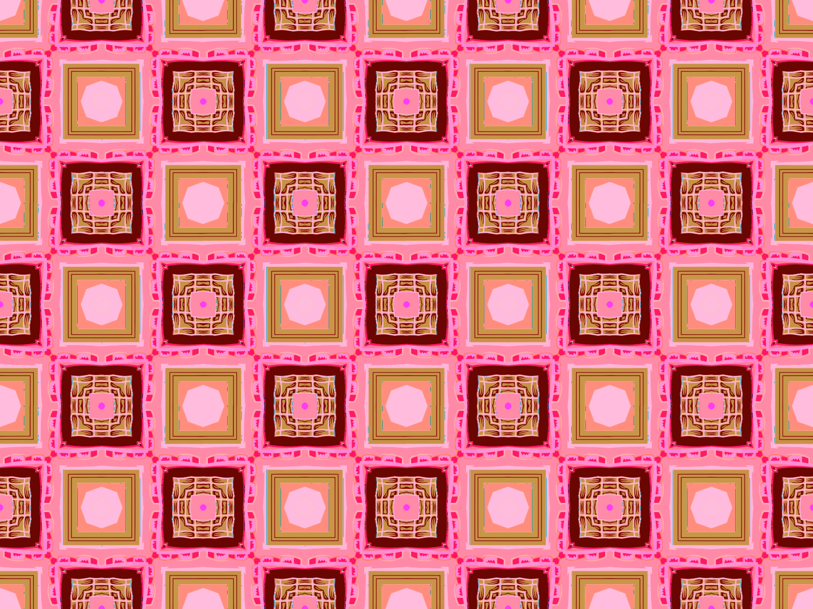 This features a pink and brown patterned wallpaper with a square tile design. The tiles are arranged in a way that creates an intricate, seamless pattern across the entire wall. Each tile is slightly different from one another, adding depth and texture to the overall appearance of the wallpaper. This unique design can be achieved by selecting the rectangle in Inkscape and using shift+alt+i to create the square tile pattern. The combination of pink and brown colors gives the wallpaper a warm and inviting atmosphere, making it an attractive choice for interior decoration.