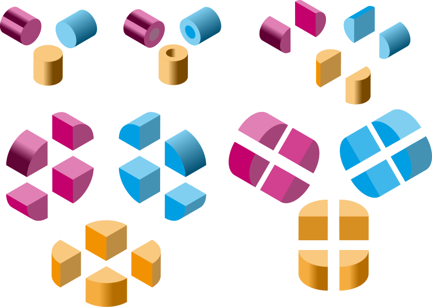 This is a completely free image Isometric shapes 3 - cylinders that you can download, post, and use for any purpose.
