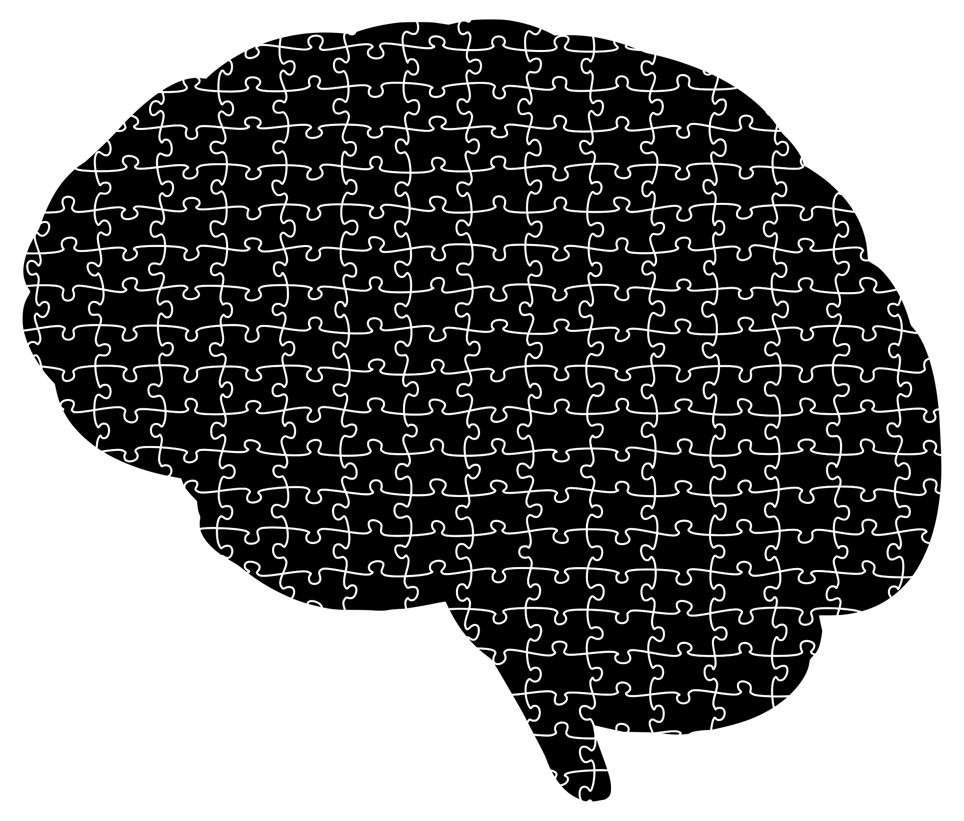 This features a close-up of a brain, which is made up of various puzzle pieces. These puzzle pieces are scattered throughout the scene, creating an intricate and detailed representation of the human brain. The puzzle pieces vary in size and shape, adding depth to the overall composition. The brain itself appears to be a silhouette, further emphasizing its importance as a central organ within the body. This unique visual representation of the brain is both captivating and thought-provoking.