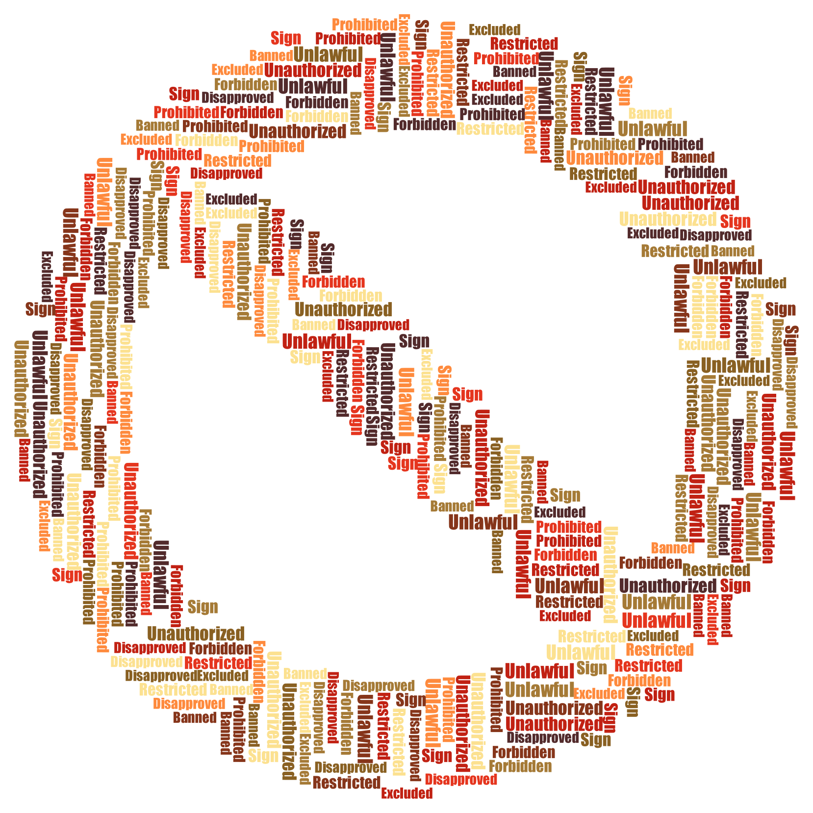 Tags: abstract, art, banned, disapproved, forbidden, no sign, prohibited, restricted, text, type, typography, word cloud, word