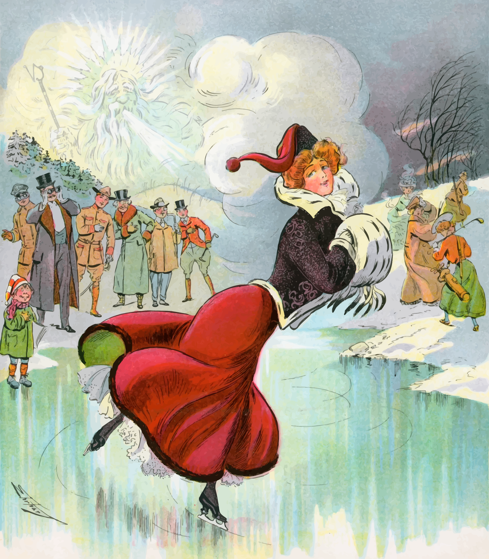 Tags: christmas, snow, santa claus, woman, skirt, hat, skater ice
