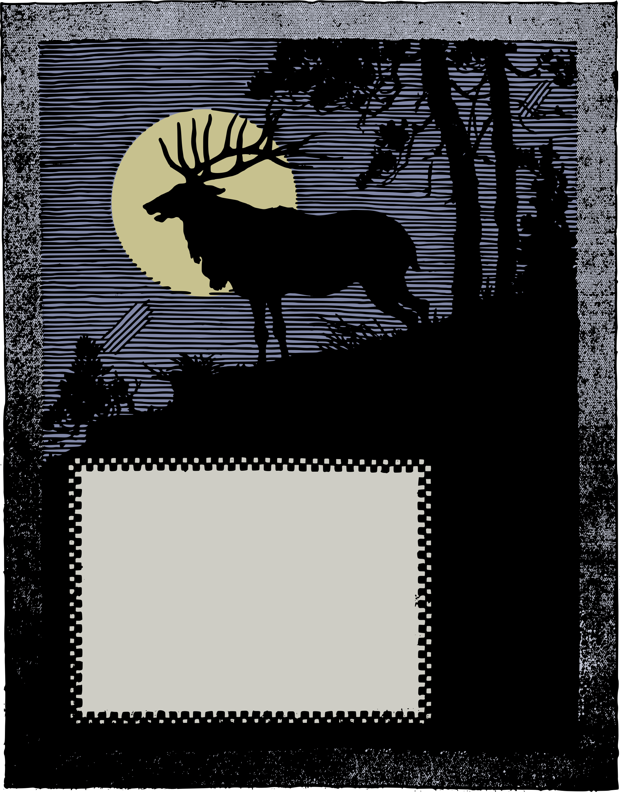 Tags: animal, border, buck, color, colour, deer, forest, frame, moon, template, tree, nighttime