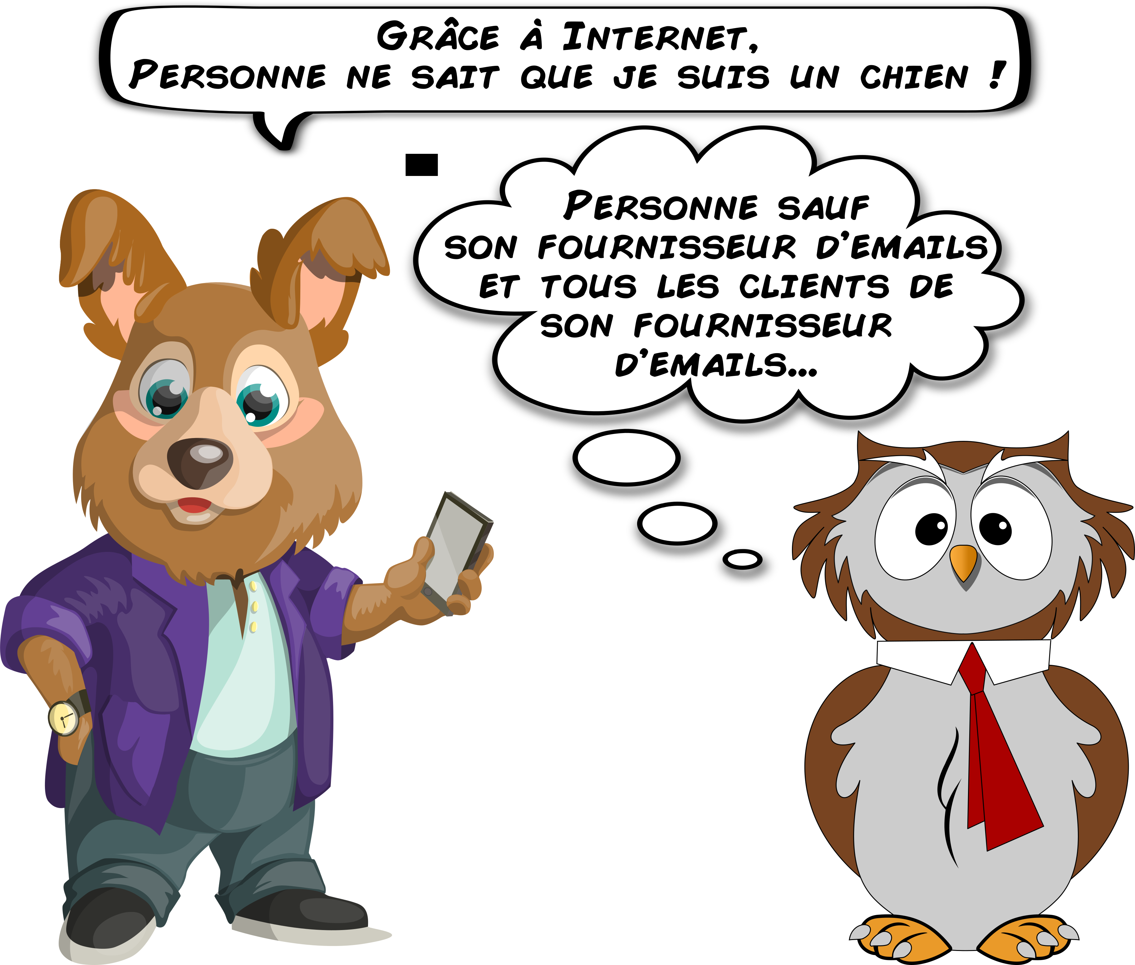 This is a completely free image A dog and an owl about email privacy (French) that you can download, post, and use for any purpose.