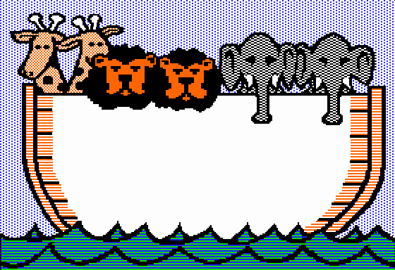 Tags: 8-bit, 8bit, apple ii, beagle bros, beagle screens, bible, caption, cartoon, faith, flood, genesis, low-res, lowres, noah, old school, oldschool, oldskool, pixel art, pixelart, presentation clipart, presentation graphic, religion, retro, animal, boat, elephant, giraffe, hippo, monkey