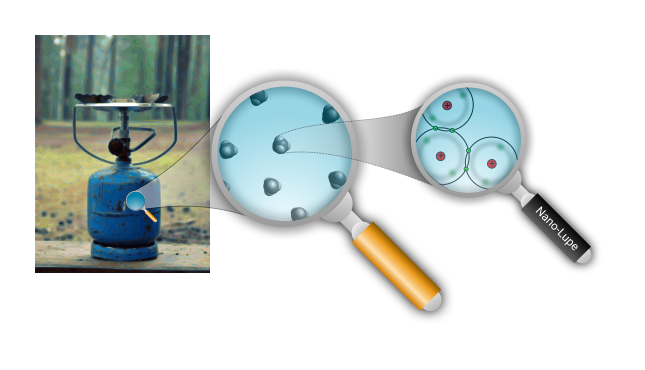 This features a blue barbecue grill with a propane tank attached to it. A magnifying glass is placed on top of the grill, and another one is positioned above it. These magnifying glasses are used for observing small objects or details up close. In addition to the magnifying glasses, there are two other smaller magnifying glasses in the scene, one located near the left side and the other towards the right side of the image. The presence of these magnifying glasses suggests that someone might be using them to examine something on the grill or its surroundings.