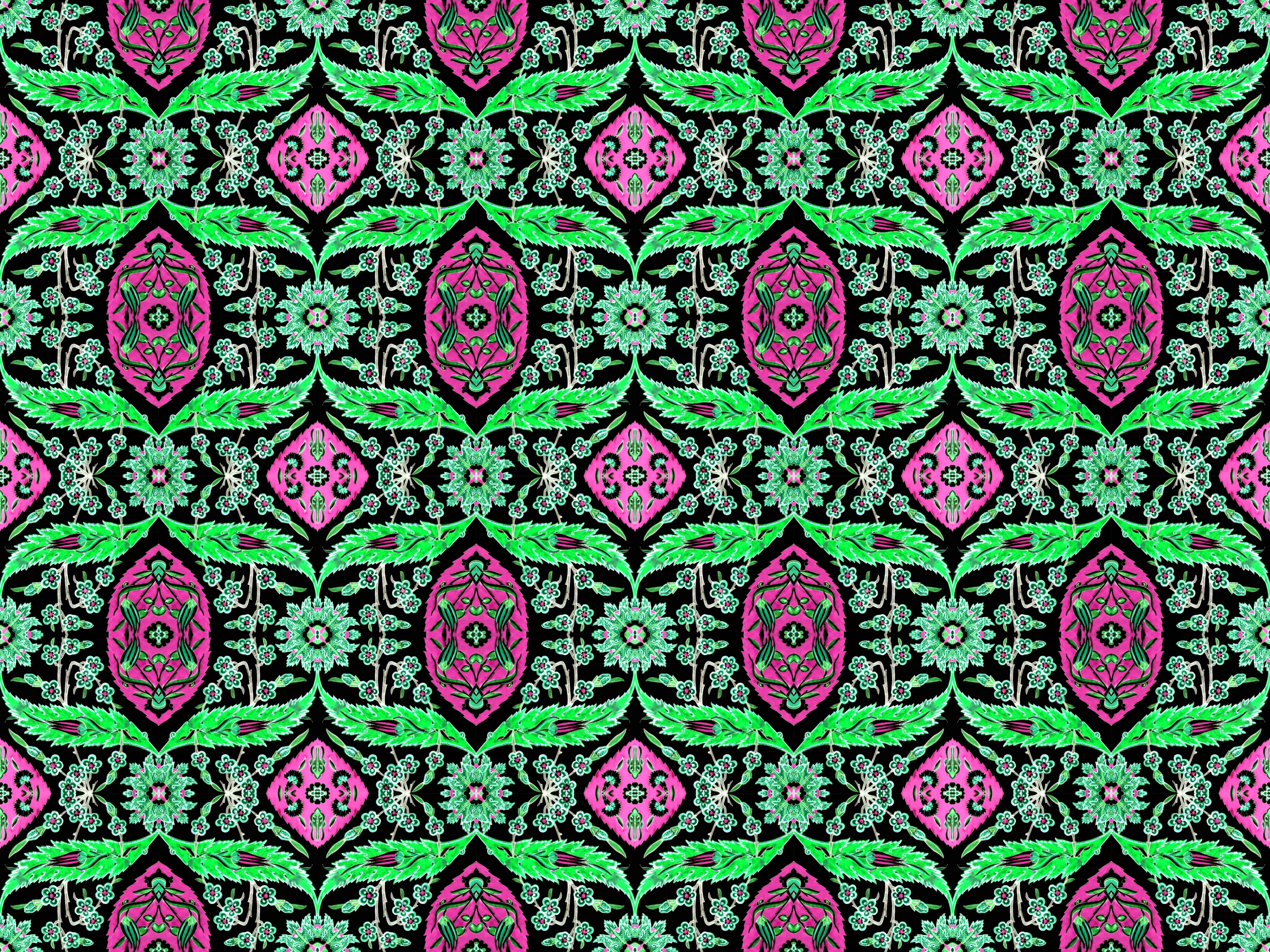 This features a pattern of green and pink flowers, with each flower having a unique design. There are several different types of flowers in the pattern, including some that have a more rounded shape while others have a more elongated appearance. The overall effect is a visually appealing and intricate floral arrangement that covers most of the image.